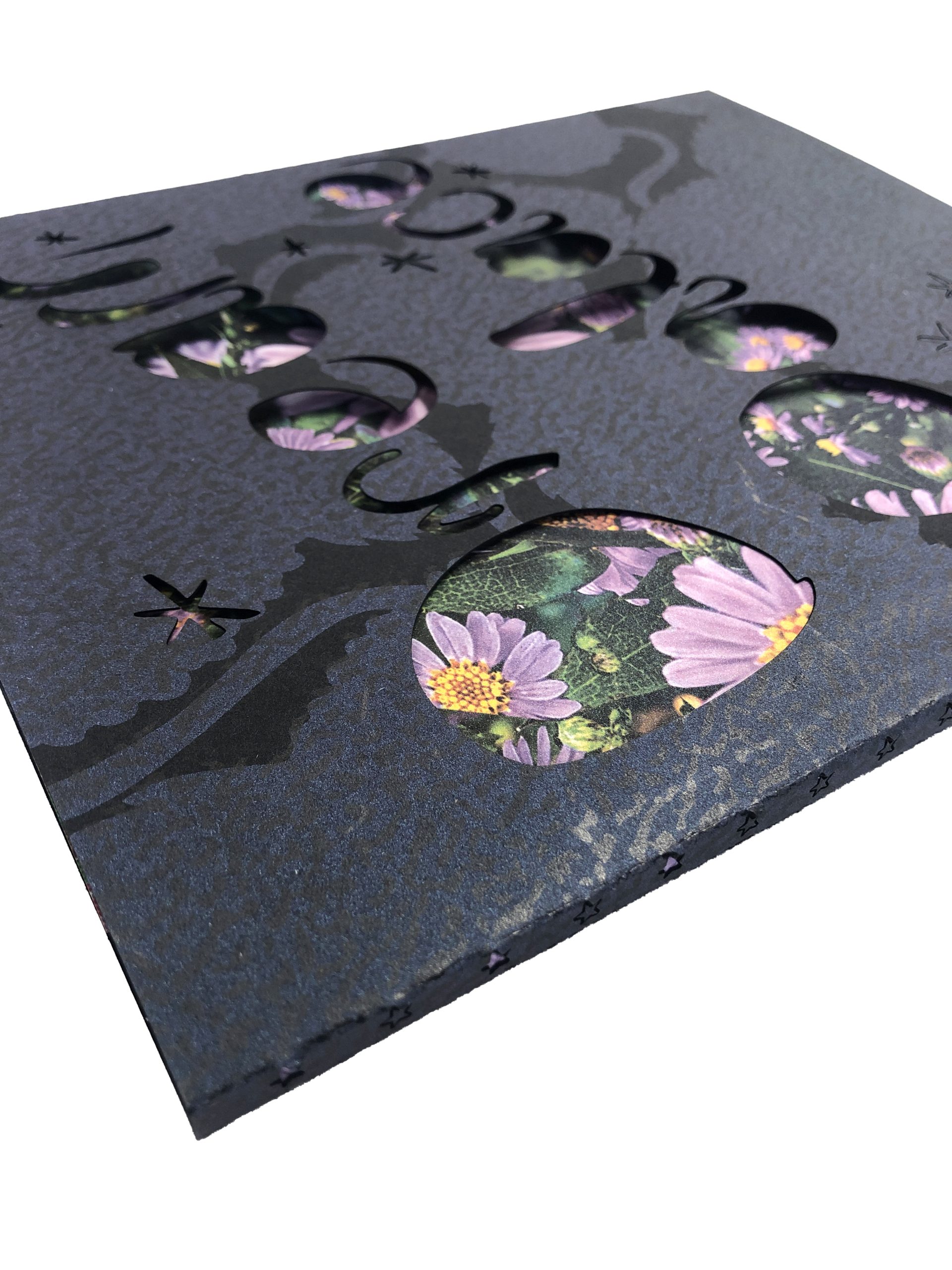 During the first week of her residency, Elizabeth designed floral photo collages which she printed using digital and screen printing methods. Then, she explored the capabilities of the laser cutter, removing the background and cutting away hand-written text.