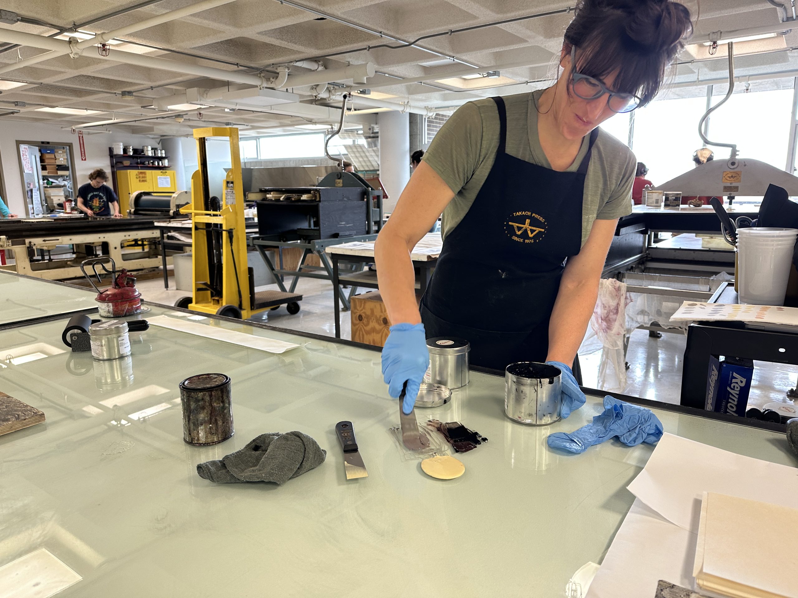 Ericka preparing a litho stone.