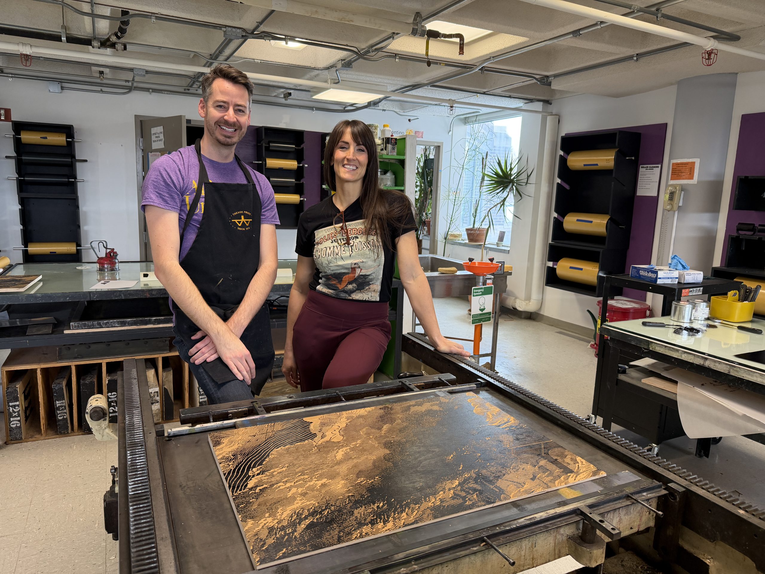 Myles and Ericka at the offset press.
